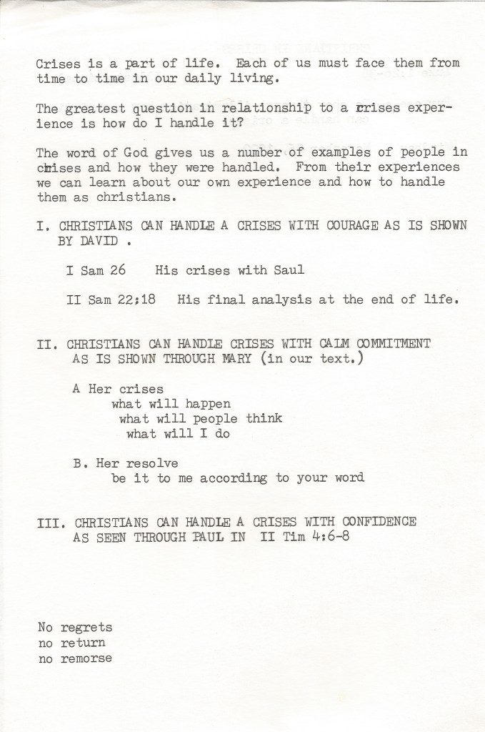 December 13, 2020December 14, 2020 by melindasbaker Christians in Crisis Luke 1:26-38 To show through illustration how a Christian can handle a crisis. Share this: Click to share on X (Opens in new window) X Click to share on Facebook (Opens in new window) Facebook Like Loading... Related