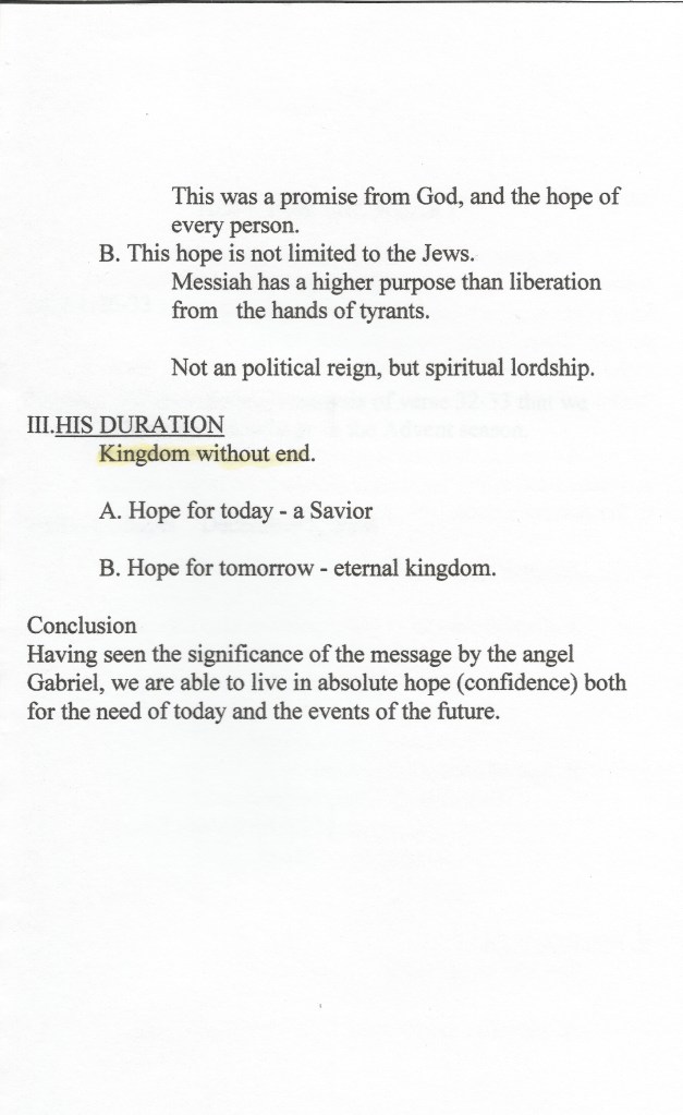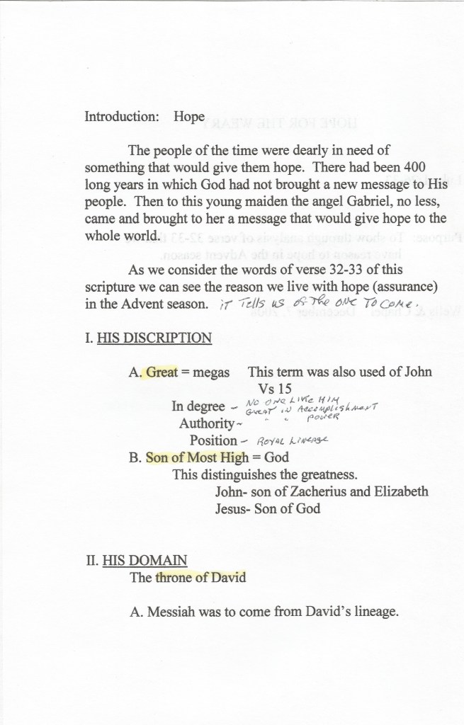 December 16, 2020December 14, 2020 by melindasbaker Hope for the Weary Luke 1:26-33 To show through the analysis of verses 32 & 33 that we have reason to hope in the Advent season. Share this: Click to share on X (Opens in new window) X Click to share on Facebook (Opens in new window) Facebook Like Loading... Related