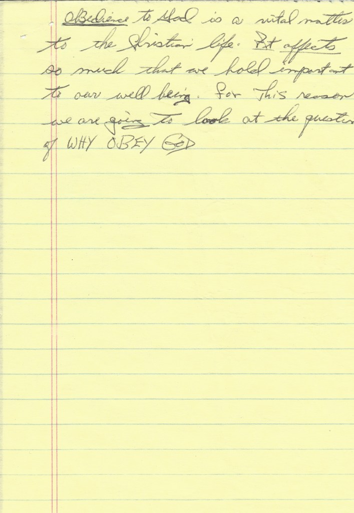 Obedience to God is a vital matter in the Christian life. It affects so much that we hold important to our well-being. For this reason we are going to look at the question of “why obey God?”