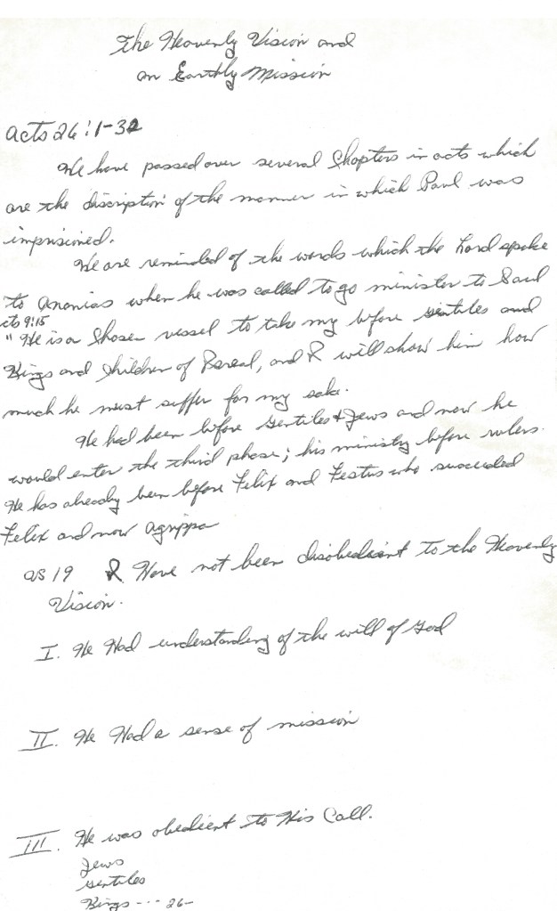 Acts 26:19 “I have not been disobedient to the Heavenly vision.”