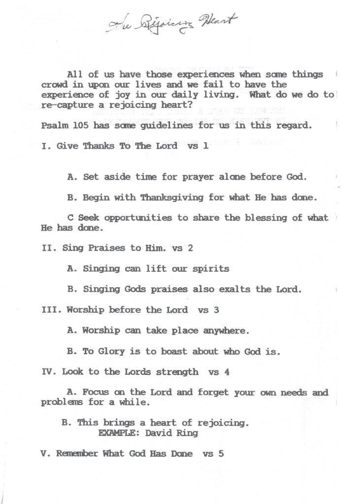 March 11, 2021March 10, 2021 by melindasbaker The Rejoicing Heart Psalm 105 The way to have a heart that rejoices in the face of all of our struggles. Share this: Share on X (Opens in new window) X Share on Facebook (Opens in new window) Facebook Like Loading... Related