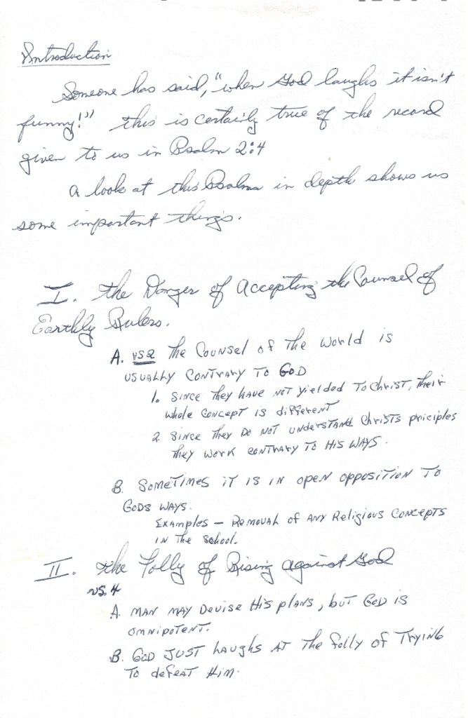 Someone has said, “when God laughs it isn’t funny!” this is certainly true of the record given to us in Psalm 2:4. A look at this Psalm in-depth shows us some important things.