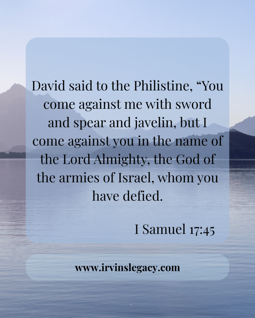 It was not David’s or Saul’s army, but a battle that belonged to God. David had said, “All those gathered here will know that it is not by sword or spear that the Lord saves; for the battle is the Lord’s, and he will give all of you into our hands.”