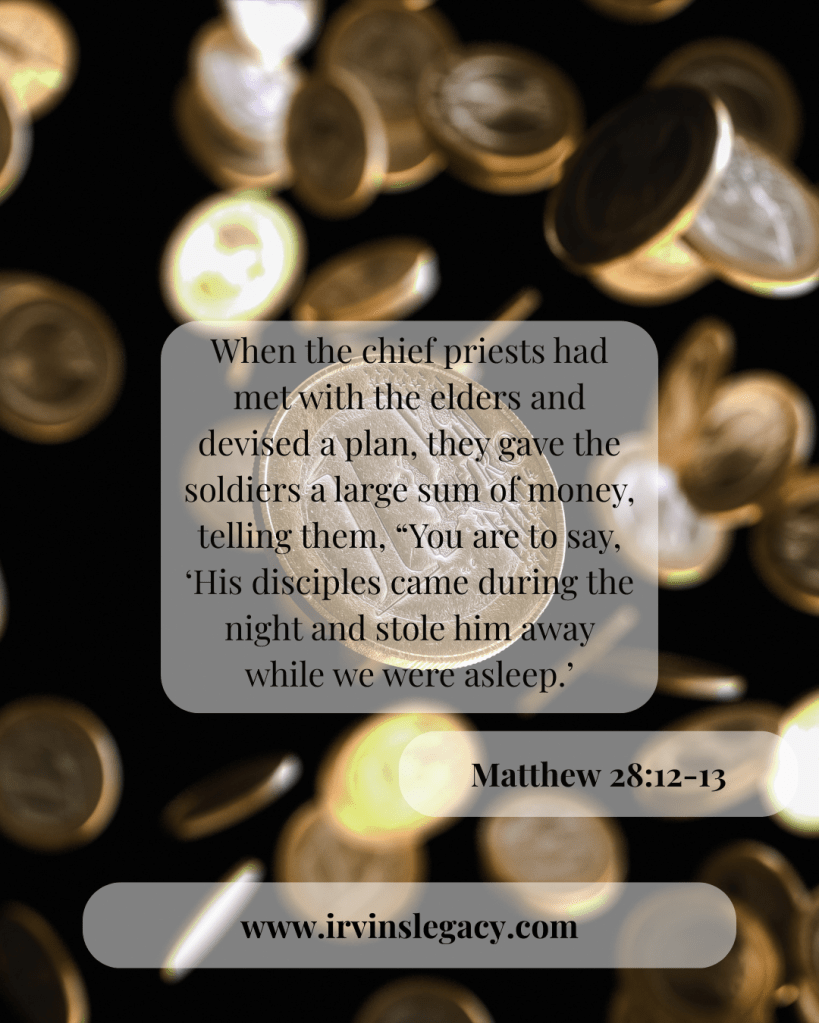 The very guards who were employed to ensure that false stories were not spread about a resurrection are now the ones taking money to start false stories.